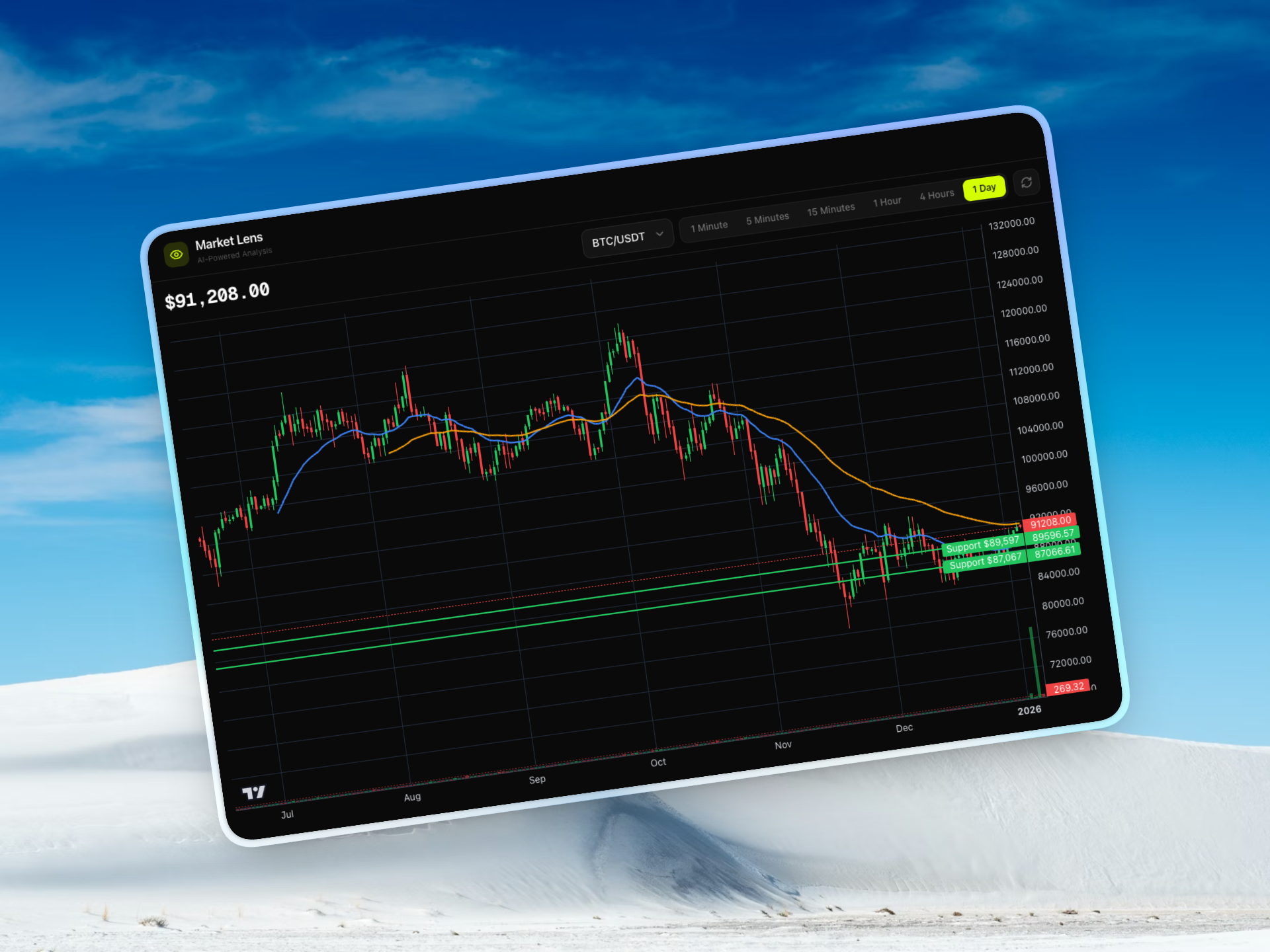 Live price feeds from Binance with WebSocket updates keep your analysis current and actionable.