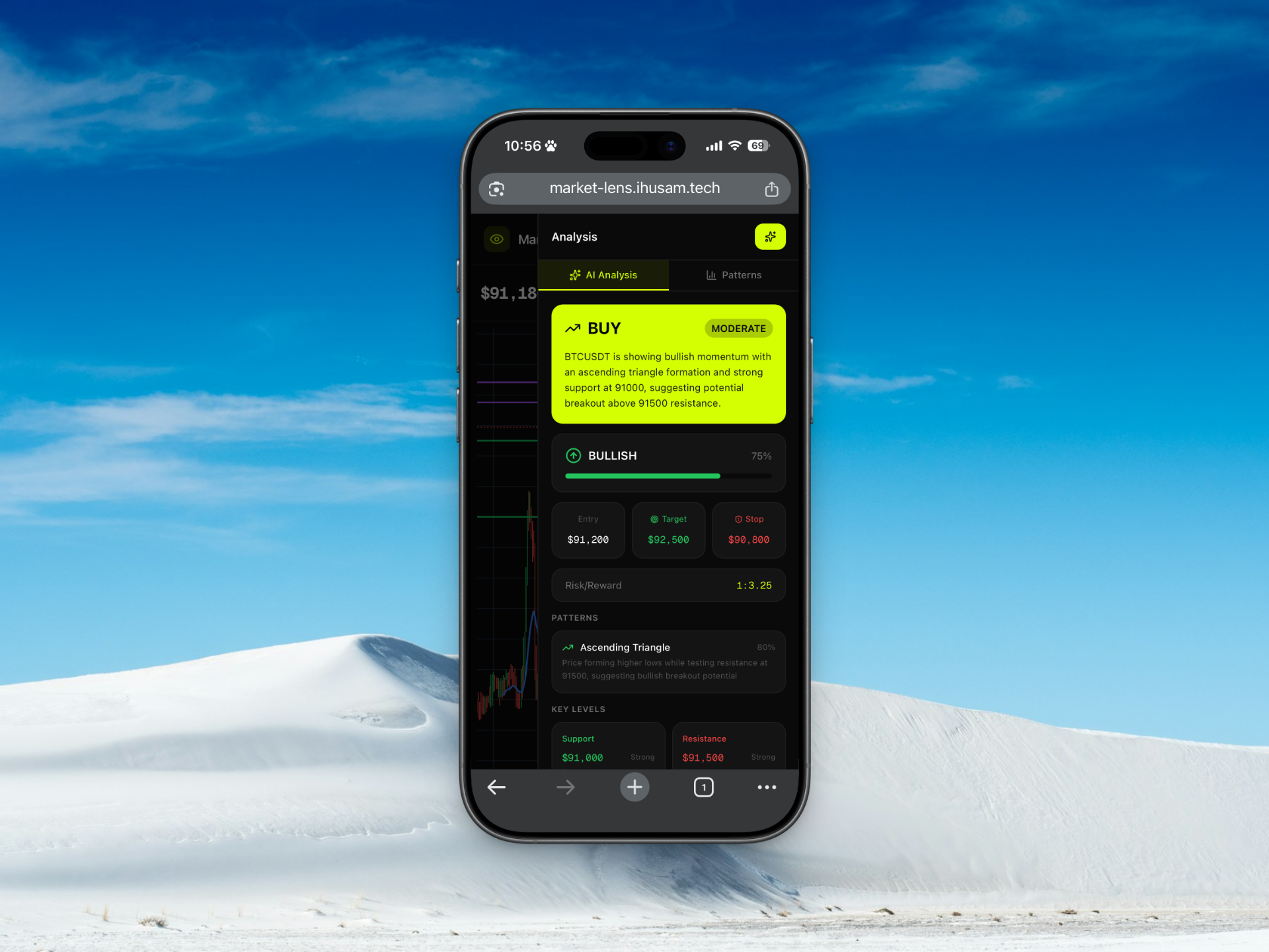 Automatically identify support and resistance levels with AI-calculated confidence scores.